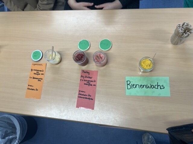One of our classes works on a project of sustainability. The project consists on making lip balms, bath bombs and oilcloths. They want to promote and to encourage some other students to try them too.