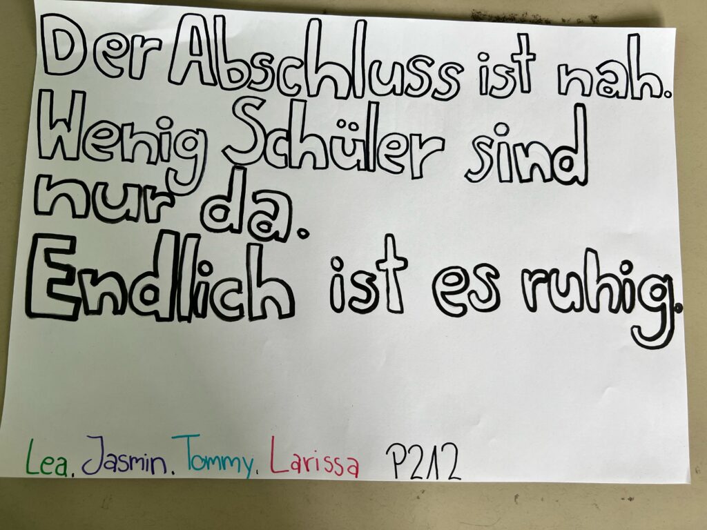 Das Schuljahr neigt sich dem Ende. Die angehenden sozialpädagogischen Assistent*innen im zweiten Ausbildungsjahr verarbeiteten ihre Gefühle und Gedanken auf kreative Weise im Deutschunterricht.