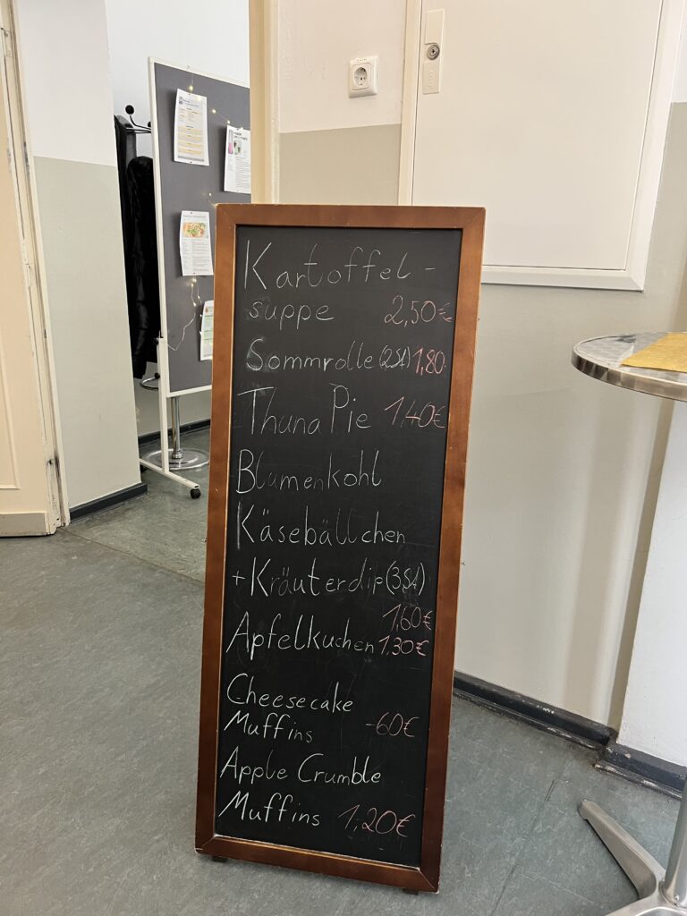 Im Erdgeschoss unserer Schule finden sie, im Raum 0.02 eine große Auswahl an Snacks, kleinen Mahlzeiten und Getränken. Diese Angebote können Sie zu einem guten Preis kaufen. Die Angebote wurden frisch von den Schülern zubereitet. Die Schüler haben sich 2 Tage auf Ihren Besuch vorbereitet, indem sie einkaufen waren, Vorarbeit mit Lebensmitteln geleistet haben und natürlich auch die Küche gründlich, für Ihren Besuch geputzt haben.